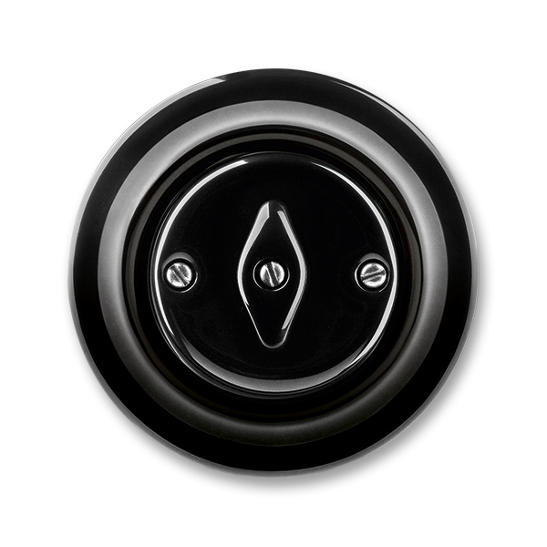 Přepínač křížový, otočný, černá-porcelán