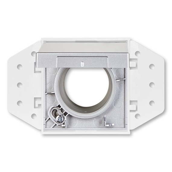 Zásuvka centrálního vysávání. Kryt se základnou vysavačové zásuvky je určen pro systémy centrálního vysávání s trubicemi o průměru 51 mm. Základna je součástí dodávky. Imitace kovového povrchu nástřikem na plastu.
