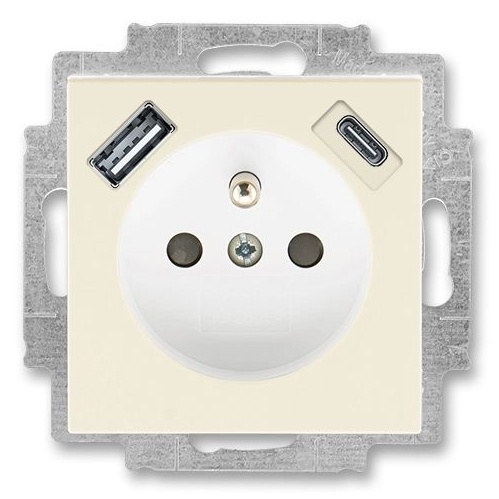 ABB LEVIT 5569H-A32357 17 ZÁSUVKA 1NÁSOBNÁ S KOLÍKEM S CLONKAMI S NABÍJENÍM USB-A USB-C SLONOVÁ KOST/BÍLÁ