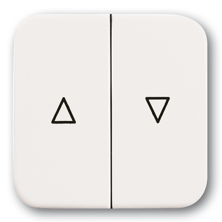 Kryt spínače žaluziového kolébkového dělený, s potiskem. Pro spínač řazení 1+1 s blokováním. Pro ovládač řazení 1/0+1/0 s blokováním.