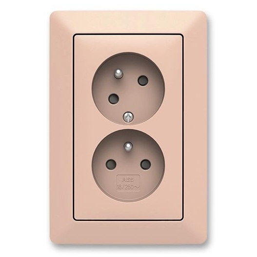 ABB Zoni 5513T-C02157 142 zásuvka dvojnásobná s ochrannými kolíky, s clonkami, s natočenou dutinou, pudrově růžová (RAL 3012)