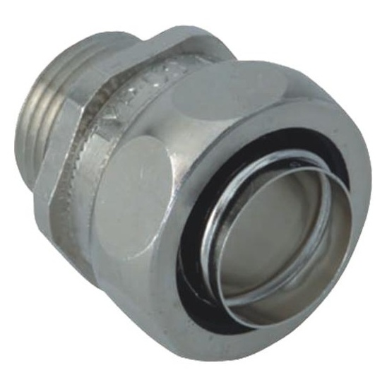 šroubení pro trubku s kovovým hrdlem, poniklovaná mosaz, -40°C/+125°C, s průchodkou