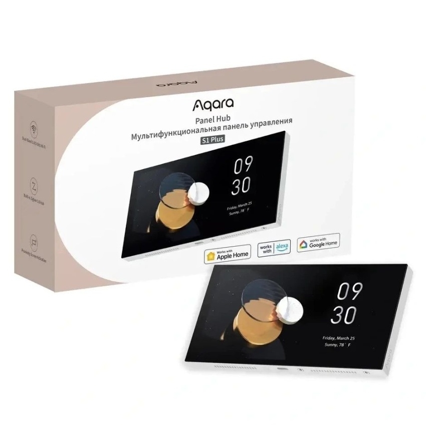 AQARA Panel Hub S1 Plus EU nabízí 6,9palcovou dotykovou obrazovku pro ovládání osvětlení, regulaci teploty a streamování videa ze zvonků a kamer Aqara. Disponuje dvěma reléovými výstupy a podporuje hlasové ovládání přes čtyři mikrofony s dosahem až 10 metrů. Panel funguje jako Zigbee 3.0 hub a Matter Bridge, umožňující integraci s ekosystémy Apple Home, Alexa a Google Home, a podporuje přizpůsobitelné ovládací panely s až 10 dashboardy.