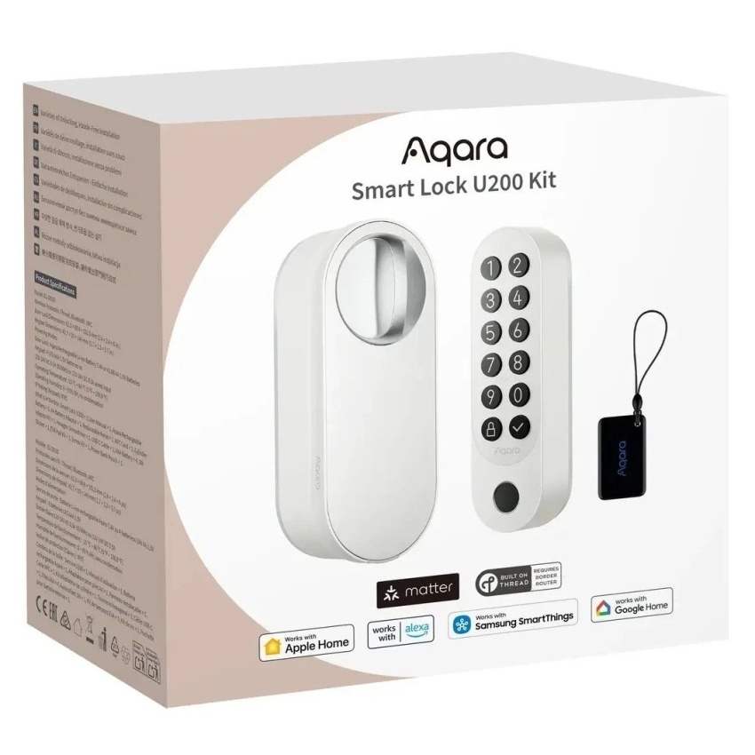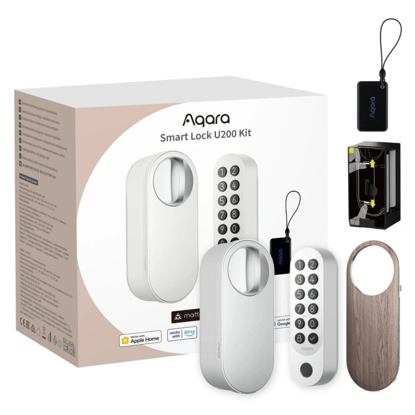 AQARA Smart Lock U200 Kit (Rev 2025) je inteligentní bezklíčový zámek s podporou Bluetooth 5.1, Thread a NFC, který umožňuje ovládání přes otisk prstu, PIN kód, NFC kartu a Apple Home Key.