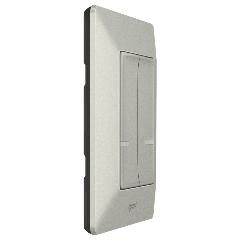 Valena Life with Netatmo dvojitý bezdrátový spínač osvětlení (baterie CR2032 a oboustranná lepenka součást balení) pro ovládání až 20 drátových přístrojů (spínačů/stmívačů, zásuvek, mobilních zásuvkových adaptérů, kabelových výstupů a mikromodulů pro osvětlení). Zadní strana je zcela plochá (lze montovat na zeď, sklo, nábytek pomocí šroubů nebo oboustranné lepenky) - barva Hliník, dodáván s rámečkem v barvě Hliník.