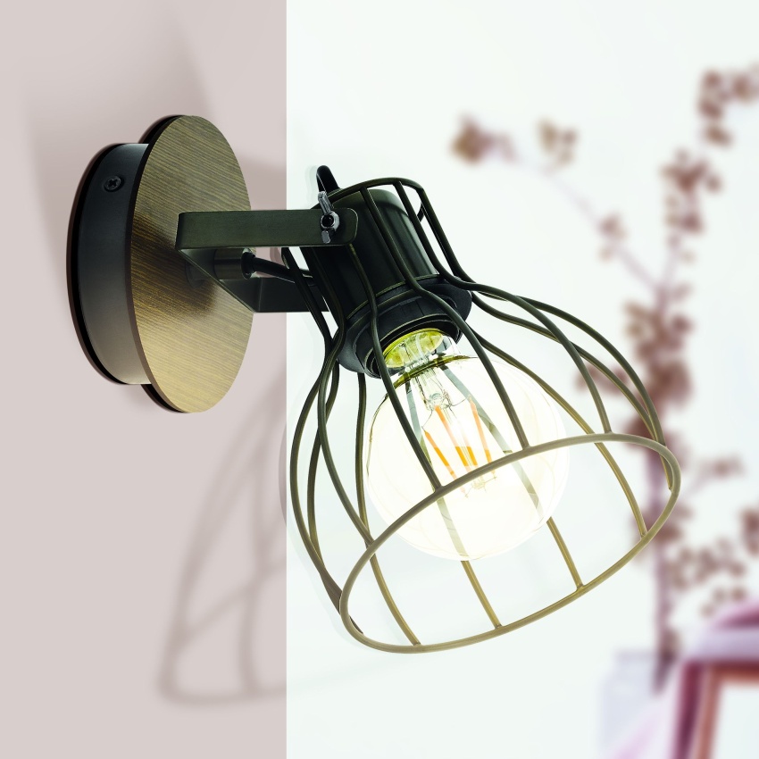 Nástěnné svítidlo SAMBATELLO je vybaveno nastavitelným bodovým světlem se stříbrným drátěným rámem a hnědým dřevěným povrchem. Nástěnné bodové světlo vytváří fascinující hru světla a stínu, jakmile se rozsvítí světlo. Nástěnné svítidlo doplňuje interiéry v industriálním stylu a díky své otočné hlavě poskytuje soustředěné osvětlení, ať už v kuchyni, obývacím pokoji, ložnici nebo chodbě. Vyobrazená žárovka s vláknem není součástí balení. Výrobek má objímku žárovky E27 a vyžaduje žárovku E27.