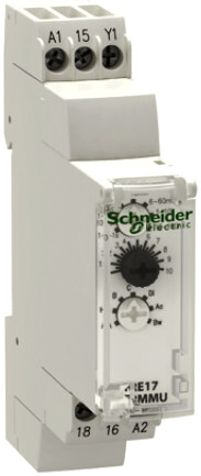 Modulární multifunkční časové relé. Funkce: A: Zpožděné sepnutí, Ac: Symetrické zpožděné sepnutí a rozepnutí po náběžné a spádové hraně řídicího signálu, At: Zpožděné sepnutí po spádové hraně řídicího signálu (s pamětí), B: Zpožděné vypnutí po náběžné hraně řídicího signálu, Bw: Impulz po náběžné i spádové hraně řídicího signálu, C: Zpožděné vypnutí s časováním po spádové hraně řídicího signálu, D: Symetrický cyklovač začínající pauzou, Di: Symetrický cyklovač začínající pulzem, H: Zpožděné vypnutí po připojení napájení, Ht: Zpožděné vypnutí po připojení napájení (s pamětí). Pokud je napájení vypnuto po dobu časování, relé se vrátí do své počáteční pozice. Příklady použití: Otevření automatických dveří, alarm, osvětlení na toaletách, ...