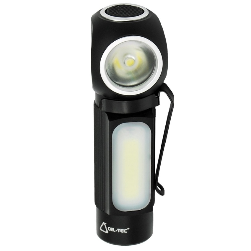 Nabíjecí úhlová čelovka CEL-TEC AL 500 COB je velice univerzální svítilna díky variabilním možnostem upevnění a použití. Je vybavena dvěma druhy světelných zdrojů, jedním z nich je tradiční bodová LED o výkonu 500 lm a druhým takzvaná COB LED (250 lm), která najde uplatnění v situacích, kdy není potřeba co nejdelší dosvit, ale naopak rovnoměrně osvítit větší bezprostřední plochu, například pracovní stůl apod. Mimo čirého světla dokáže COD LED svítit také červeně.