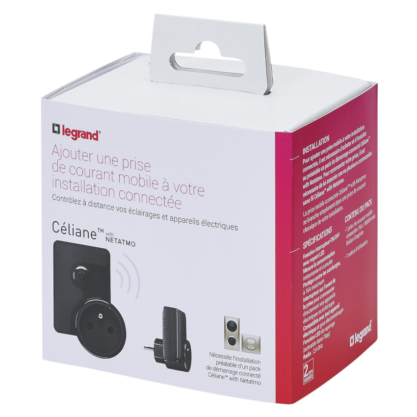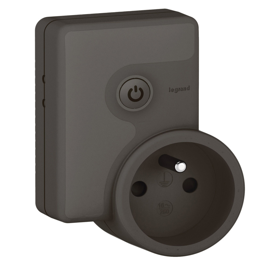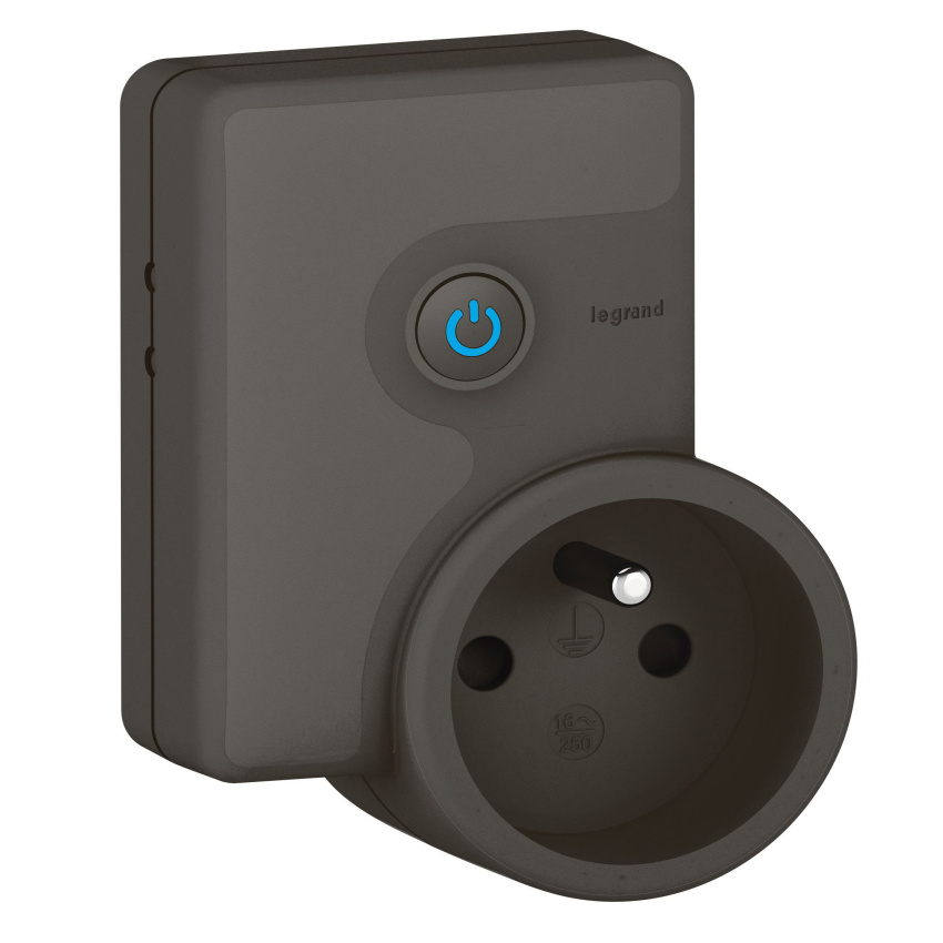 Legrand with Netatmo mobilní zásuvkový adaptér 230V/16A s měřením spotřeby el. energie, lze ho ovládat bezdrátovými spínači osvětlení, mobilem nebo hlasem. Přístroj lze přidat do scénářů nebo časových programů - černá barva.