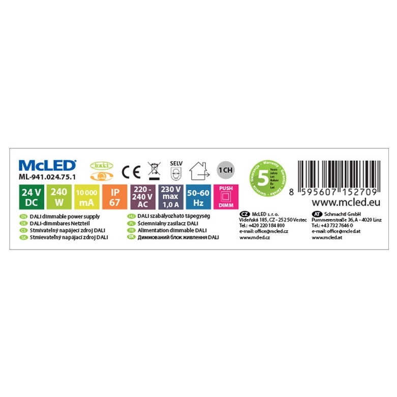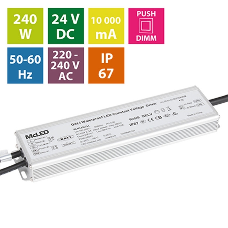 DALI stmívatelný zdroj McLED 240W, DC24V/10A, IP67, kov ML-941.024.75.1