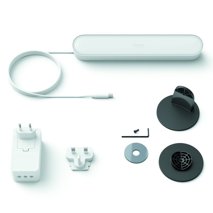 - K této základní sadě je možné připojit další až 2 samostatné světelné lišty Hue Play (extension kit) a zapojit je do přiloženého síťového adaptéru. Příkon zdroje činí 1 x 6 W se svítivostí až 500 lm při 4000 K. Životnost zdroje dosahuje 25 000 hodin. Svítidlo je zhotoveno z kvalitních syntetických materiálů v bílé barvě. Jeho celkové rozměry činí 3,6 x 25,3 x 4,4 cm. Světelnou lištu je možné umístit na na stěnu či TV, nebo ji vodorovně položit na stůl. S krytím IP20 je vhodné pouze pro vnitřní použití.