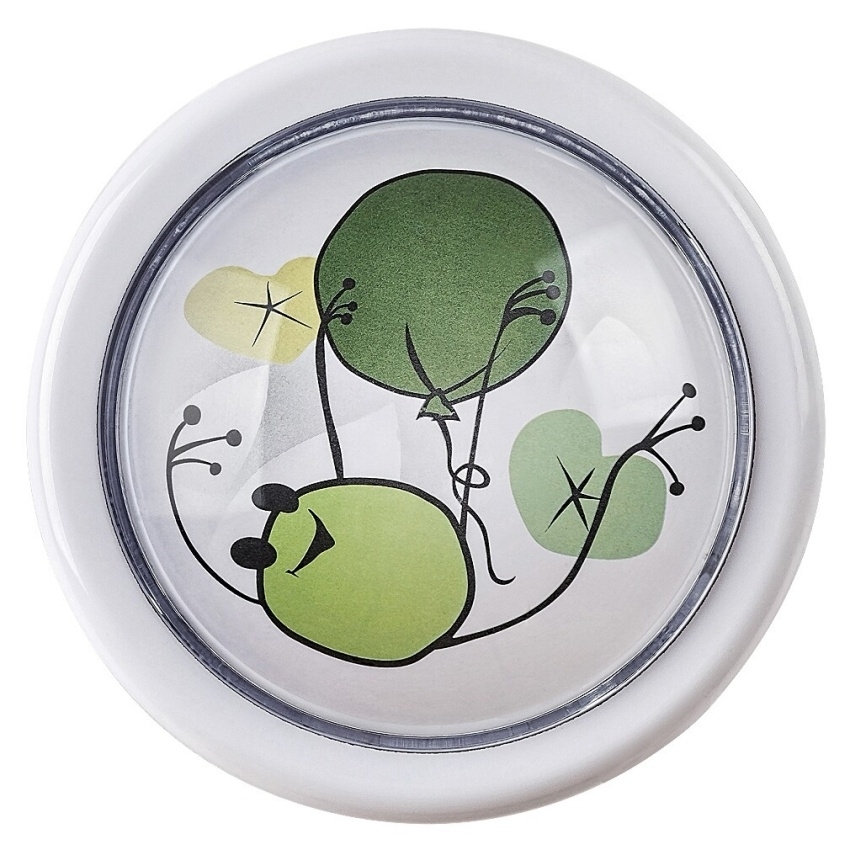 Dětské noční světlo Rabalux Froggo 76071 je ideální volbou pro všechny, kteří hledají jednoduché a zábavné řešení do dětského pokoje. Svítidlo zaujme kulatým tvarem, barevným motivem a snadným ovládáním pomocí stisku stínítka – světlo se zapíná i vypíná dotykem, takže jej děti zvládnou používat samy. Vestavěný LED zdroj o výkonu 0,3 W vyzařuje příjemné studené bílé světlo 6000 K se světelným tokem 5 lm, které neoslňuje a vytváří klidné prostředí pro usínání. Lampa funguje na dvě baterie typu AA (nejsou součástí balení), je vyrobena z odolného plastu a díky své nízké hmotnosti ji lze snadno přemístit kamkoliv. Model má krytí IP20 a patří do třídy ochrany III.