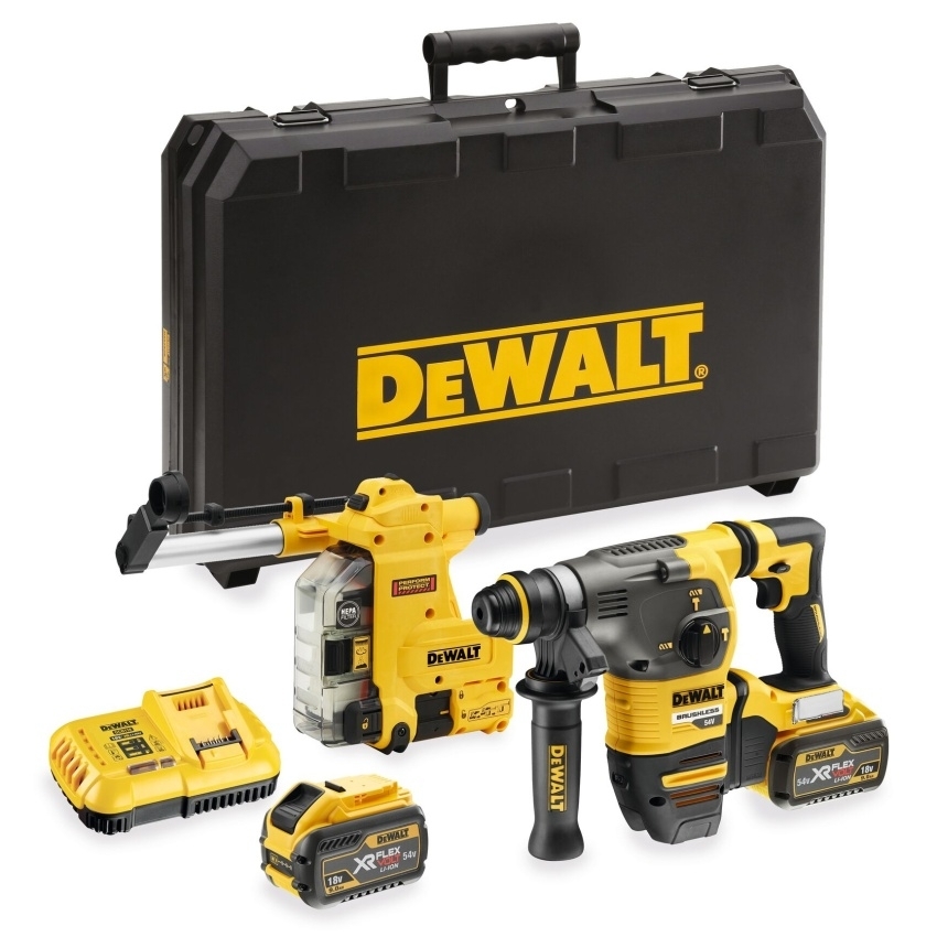 54V XR FLEXVOLT kombinované kladivo 30 mm rychlovýměnné sklíčidlo s odsáváním - 9,0 / 3,0 Ah