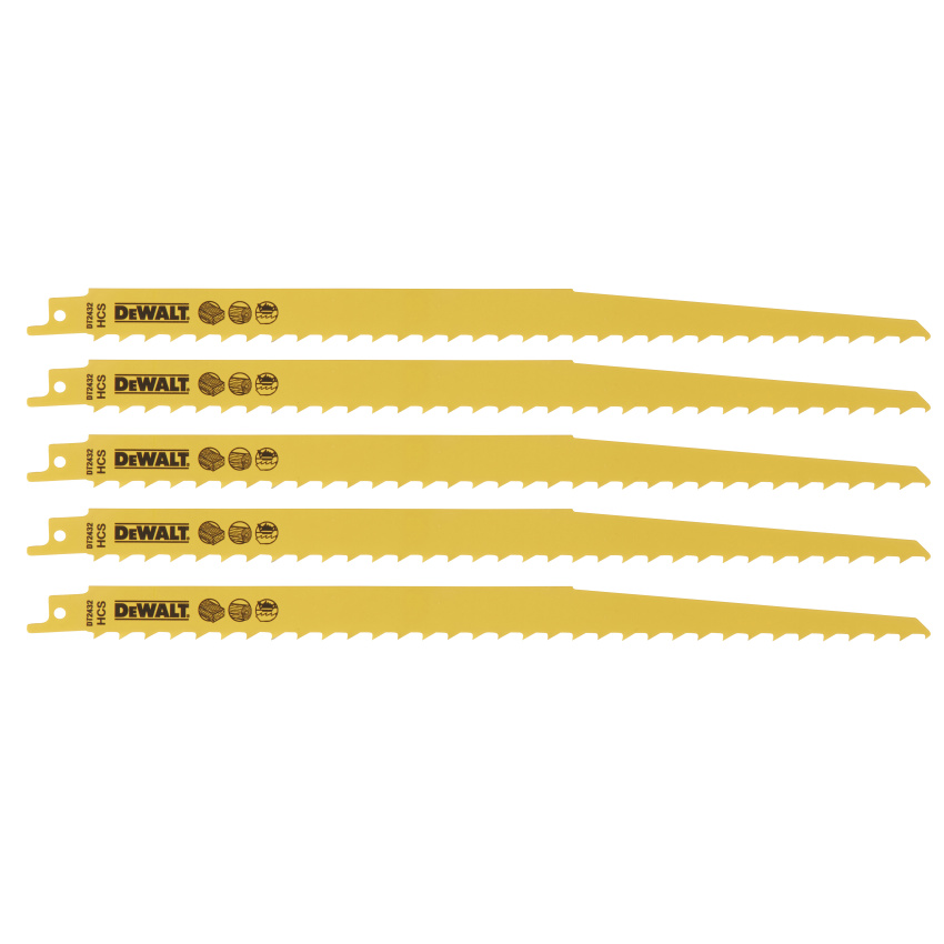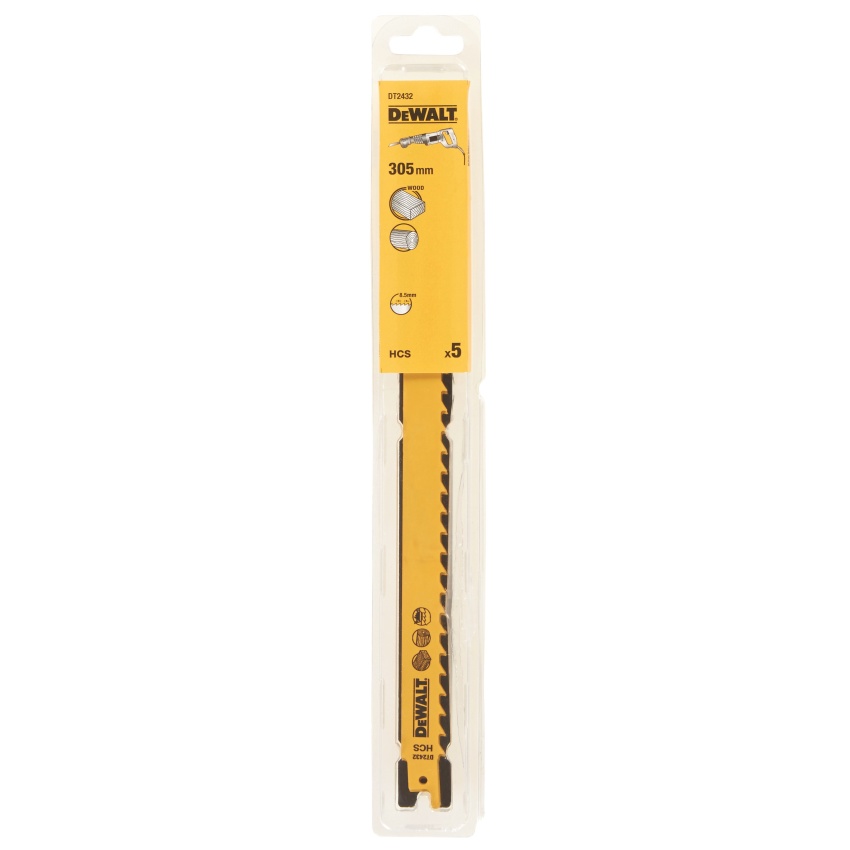 Pilové listy HCS do mečové pily - pro rychlé a hrubé řezy dřeva (polena a prořezávání), délka 305 mm, rozteč 8,5 mm.. <ul><li>Konstrukce bimetalového pilového listu v sobě spojuje vlastnosti rychlořezné oceli (HSS) a oceli s vysokým obsahem uhlíku (HCS), což zaručuje větší flexibilitu a odolnost.</li><li>Konstrukce z oceli s vysokým obsahem uhlíku.</li><li>Univerzální upínací stopka vyhovuje použití se všemi hlavními značkami nářadí jako jsou DEWALT, Bosch, Hitachi, Flex, Makita, Metabo, Skil.</li></ul>