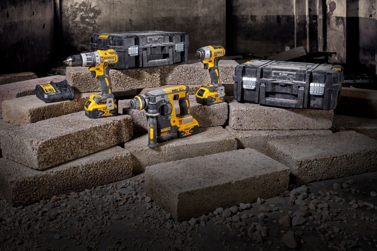 - Sada obsahuje následující: Vrtací kladivo s bezuhlíkovým motorem, kompaktní příklepová vrtačka s bezuhlíkovým motorem, rázový šroubovák s bezuhlíkovým motorem, 2 × kufr TSTAK II