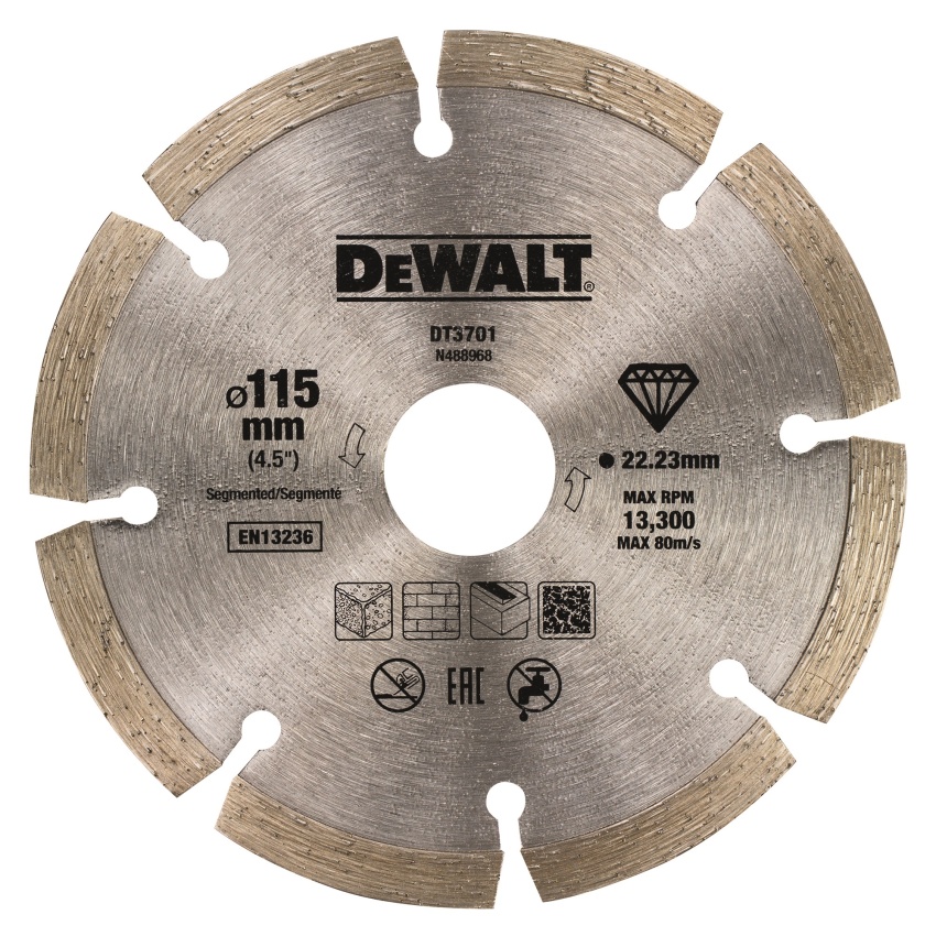 KOTOUČ DIAMANT. DT3701, NA SUCHÉ ŘEZÁNÍ BETONU A CIHEL, 115X22,2MM
