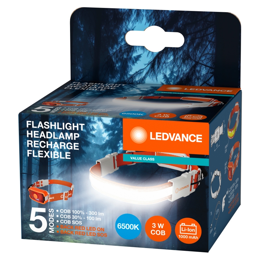 Dobíjecí venkovní LED čelovka LEDVANCE FLEXIBLE 3W 300lm, studená bílá