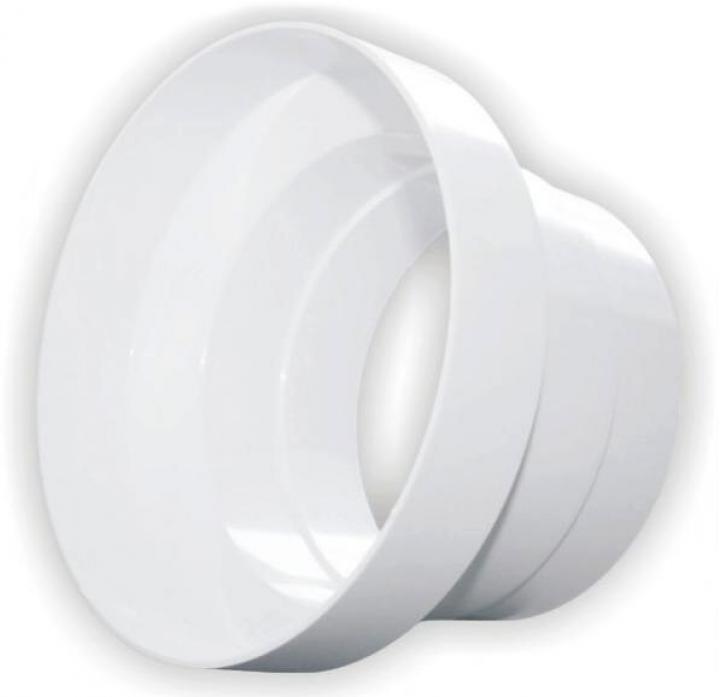 Univerzální plastová redukce (redukce o průměrech 100 a 125 mm) pro individuální přizpůsobení průměru ventilačního vedení. Plastová redukce je vyrobená z kvalitní bílé hmoty ABS. Dle typu umožňuje změnit velikost průměru ventilačního vedení.