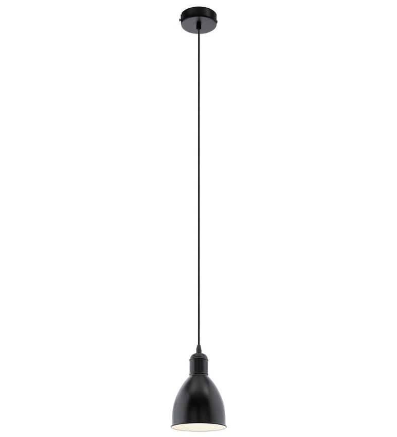 Závěsné svítidlo PRIDDY má kulaté kovové stínidlo v černé barvě s bílým vnitřním povrchem. Výrobek má design v industriálním stylu a je dokonalým završením moderních interiérů a poskytuje atraktivní osvětlení v obývacím pokoji nebo nad jídelním stolem. Žárovka není součástí dodávky. Výrobek má objímku žárovky E27 a vyžaduje žárovku E27.