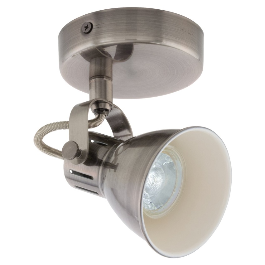 Nástěnné a stropní svítidlo SERAS LED má kovový držák ze starožitného niklu a nastavitelné kovové bodové světlo s vnitřním povrchem krémové barvy. Trendový vzhled stropního bodového svítidla dokonale doplňuje moderní interiéry a poskytuje soustředěné osvětlení v kuchyni, obývacím pokoji, ložnici, chodbě nebo jídelně. Součástí výrobku je vyobrazená LED žárovka GU10, která vydává příjemné teplé bílé světlo.