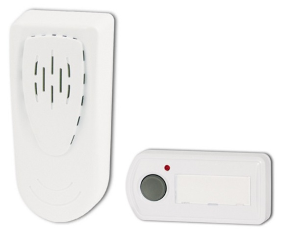 Bateriový bezdrátový zvonek - je vybaven klipsou, která umožňuje zavěšení přijímače například na opasek. Napájení tužkovými alkalickými bateriemi (2x1,5V, R6/AA) s životností cca 3 měsíce. Pro zabezpečení tlačítka před vlivy počasí doporučujeme použít kryt bezdrátového tlačítka. Další parametry: citlivost přijímače < -86 dBm, pracovní teplota přijímače 0°C až +50°C, Vf výkon vysílače < 200 uW, digitální kódování 64 kódů, životnost baterie vysílače 1,5 roku, pracovní teplota vysílače -20°C až +50°C.