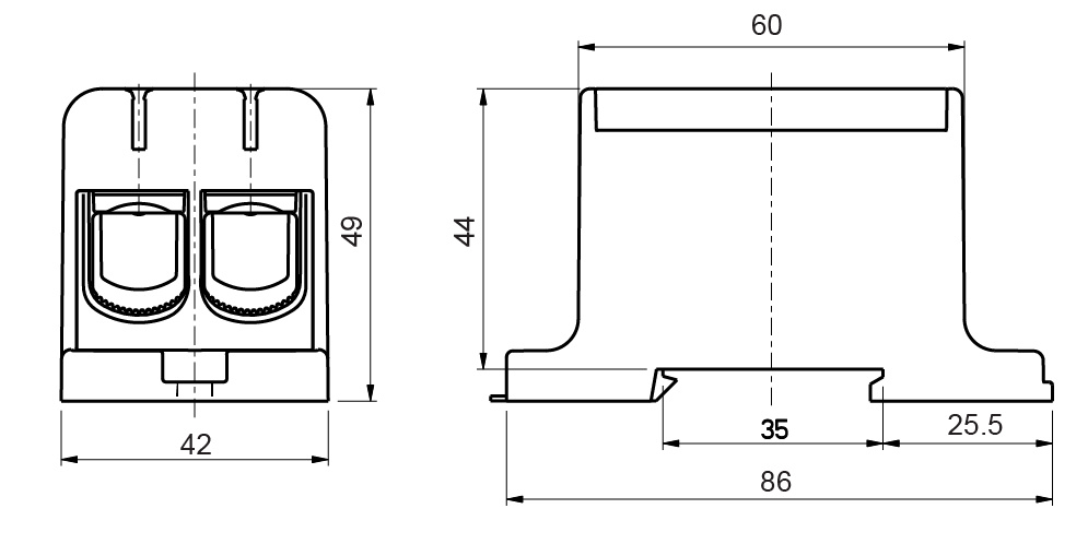 Svorka univerzální UK 95/2 A, 245A, 1pól., AL/CU, krytá, šedá, na DIN/panel