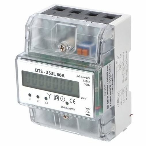Elektroměr DTS-353L 80A je třífázový podružný elektroměr s LCD displejem určený pro přímé měření činné elektrické energie ve střídavých sítích 3 × 230 V / 400 V, 50 Hz. Je konstruován pro jednofázové tarifní měření a umožňuje měření proudu od minimální hodnoty 0,25 A až do maximální hodnoty 80 A. Elektroměr je určen pro montáž na nosnou lištu DIN 35 mm, má vestavnou šířku 76 mm (4,5 modulu) a je vybaven impulzním výstupem S0.