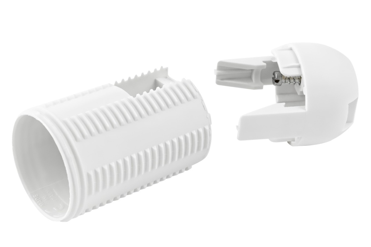 Plastová objímka - vnější závit, bezšroubová, bílá.