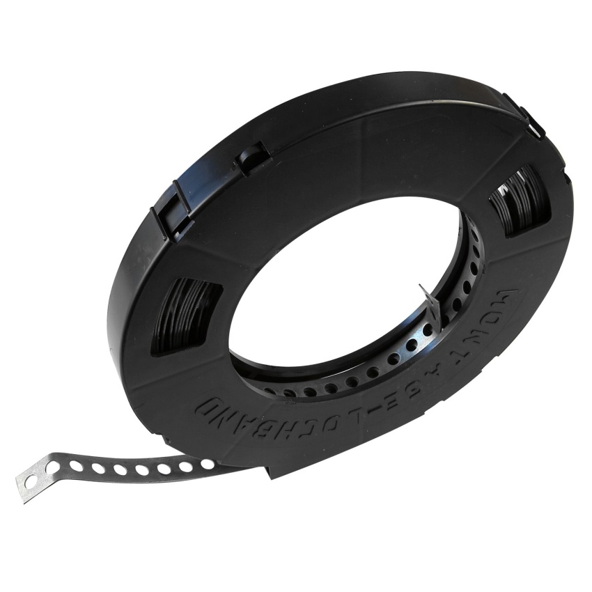 Montážní páska v kazetě, děrovaná, železná, pozinkovaná.