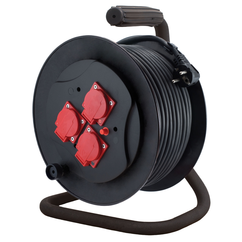 Prodlužovací kabel navinutý na bubnu s tepelnou ochranou, se zásuvkami odolnými proti zvýšené vlhkosti, kabel H05RR-F 3G, 3x1,5 mm2 (GUMA).