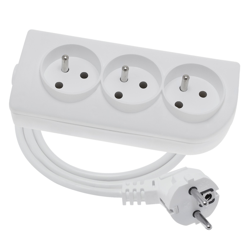 Prodlužovací přívod, 3x zásuvka 2p+Z, 250V, 16A, kabel H05VV-F 3x1,5mm, IP20, barva bílá, délka 3m.