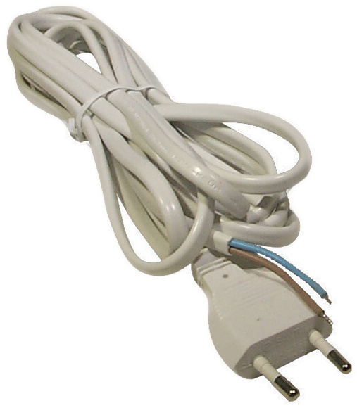 Flexo šňůra s přímou vidlicí v bílé barvě. Flexo šňůra má dvoužilové pohyblivé přívody s neoddělitelnou vidlicí s PVC izolací. Délka flexo šňůry je 2 m.