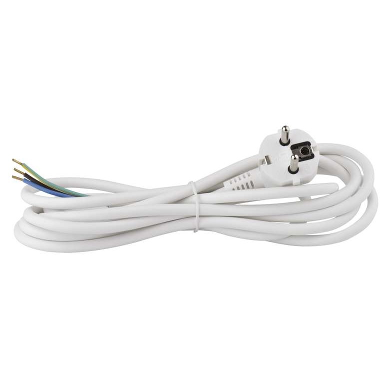 Flexo šňůra s neoddělitelnou úhlovou vidlicí s PVC izolací. Flexo šňůra má třížilový pohyblivý přívod. Délka flexo šňůry je 3 m. Barevné provedení flexo šňůry je bílá.