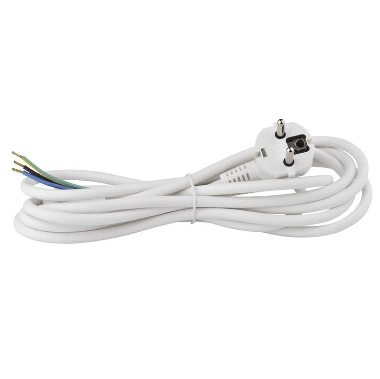Flexo šňůra s neoddělitelnou úhlovou vidlicí s PVC izolací. Flexo šňůra má třížilový pohyblivý přívod. Délka flexo šňůry je 3 m. Barevné provedení flexo šňůry je bílá.