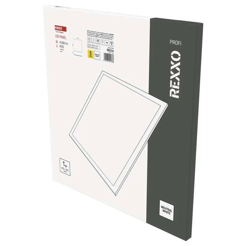- LED panely REXXO kombinují atraktivní čtvercový design společně s výjimečnou rovnoměrností vyzařovaného světla. Jejich neutrální bílé světlo má nejblíže k přirozenému dennímu světlu.