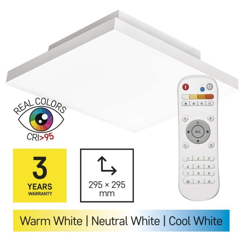 EMOS LED přisazené svítidlo IRVI, čtvercové 18W frameless, stmív. se změnou CCT, CRI>95