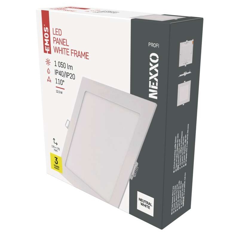 EMOS LED vestavné svítidlo NEXXO, čtvercové, bílé, 12,5W, neutrální bílá