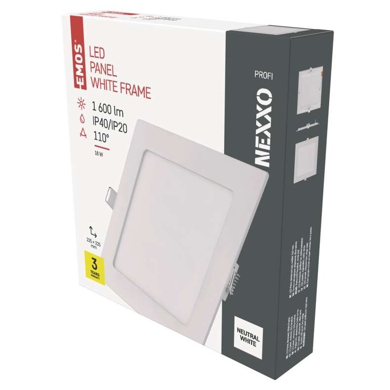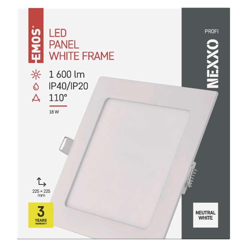 EMOS LED vestavné svítidlo NEXXO, čtvercové, bílé, 18W, neutrální bílá