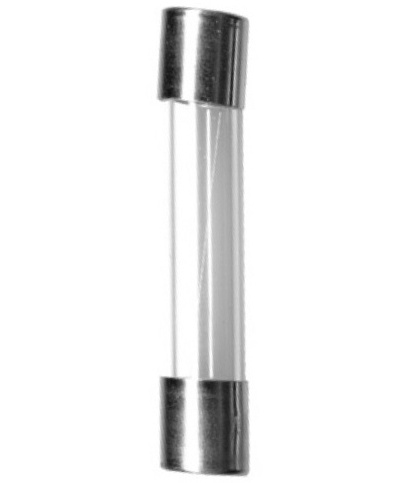 Skleněná trubičková pojistka, rychlá. Kontakty pojistky jsou z poniklované mosazi.