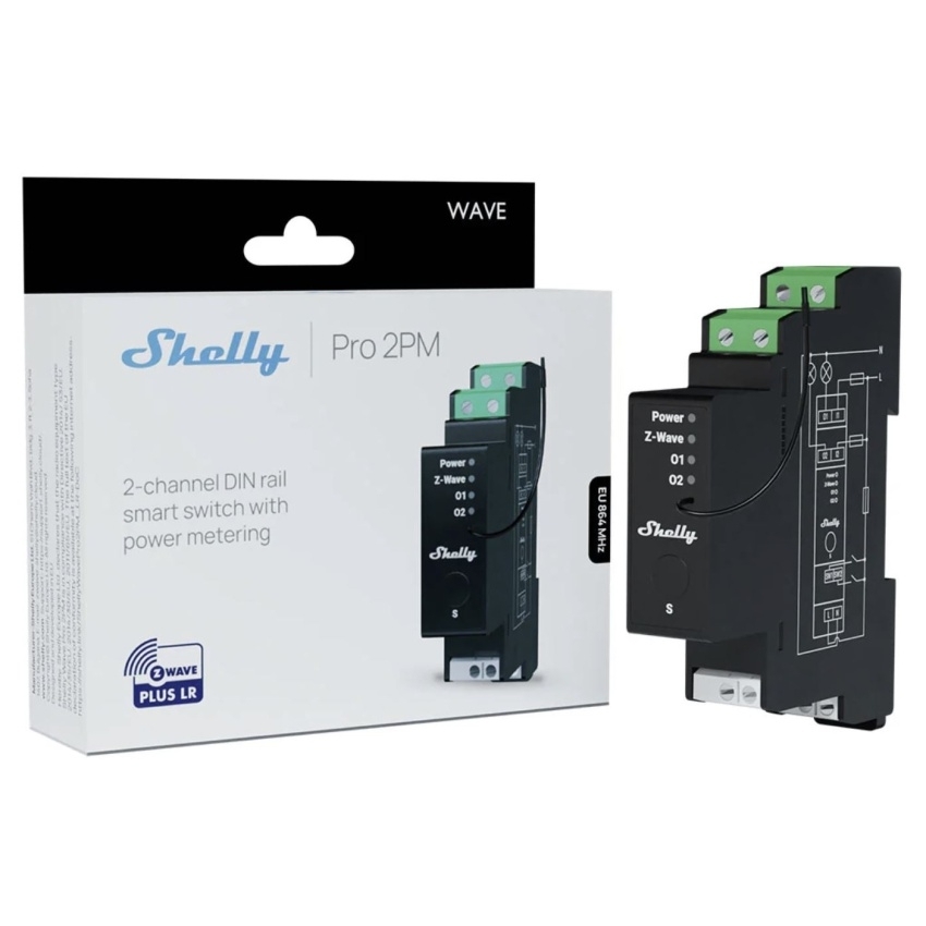 Shelly Wave Pro 2PM LR je profesionální dvoukanálový spínací modul na DIN lištu s přesným měřením spotřeby energie. Umožňuje nezávislé ovládání dvou okruhů s výkonem až 16 A na kanál (max. zařízení 25 A celkem). Díky moderní platformě Z-Wave 800 a podpoře Z-Wave Long Range (ZWLR) nabízí stabilní bezdrátovou komunikaci s dosahem až 1 km při přímé viditelnosti. Modul je ideální pro chytré rozvaděče v domácnostech, kancelářích i menších komerčních instalacích, kde poskytuje přehled o okamžitém výkonu i celkové spotřebě energie.