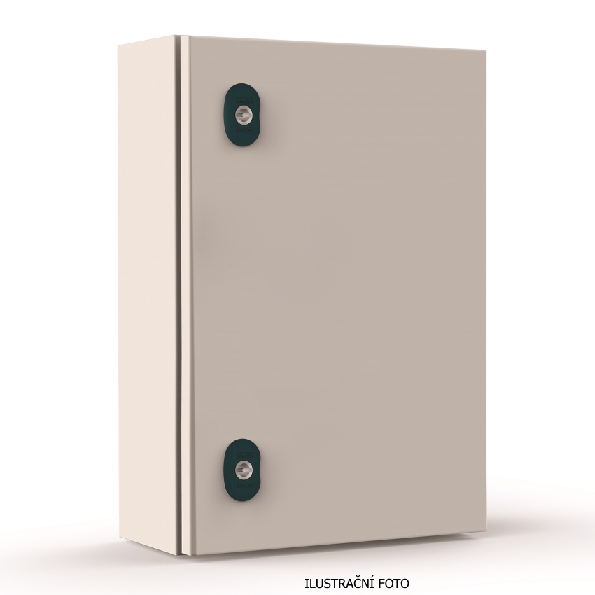 - Dodávka zahrnuje pouzdro; oboustranné dveře s průměrem. 3,0 mm dvojitý blokovací systém a nr. 2 svařované a lakované profily; montážní deska; příruba pro uzavírání kabelů a sada šroubů pro uzemnění a montáž.