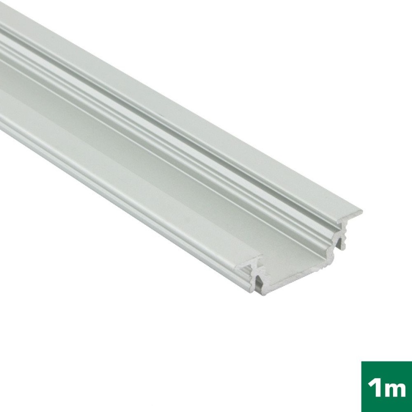 AL profil určený pro jeden LED pásek. Pásek se jednoduše nalepí do profilu a profil se osadí do vyfrézované drážky. Profil zároveň plní funkci chlazení (odvod ztrátového tepla) což je nutné u výkonných LED pásků.