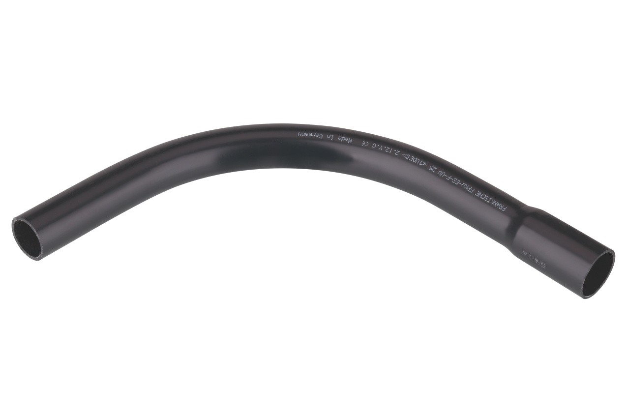 Plastový násuvný oblouk z modifikovaného PVC, na jedné straně s nalisovanou spojkou, v černé barvě (RAL 9005), který brání šíření plamene a je stabilizovaný proti UV záření.