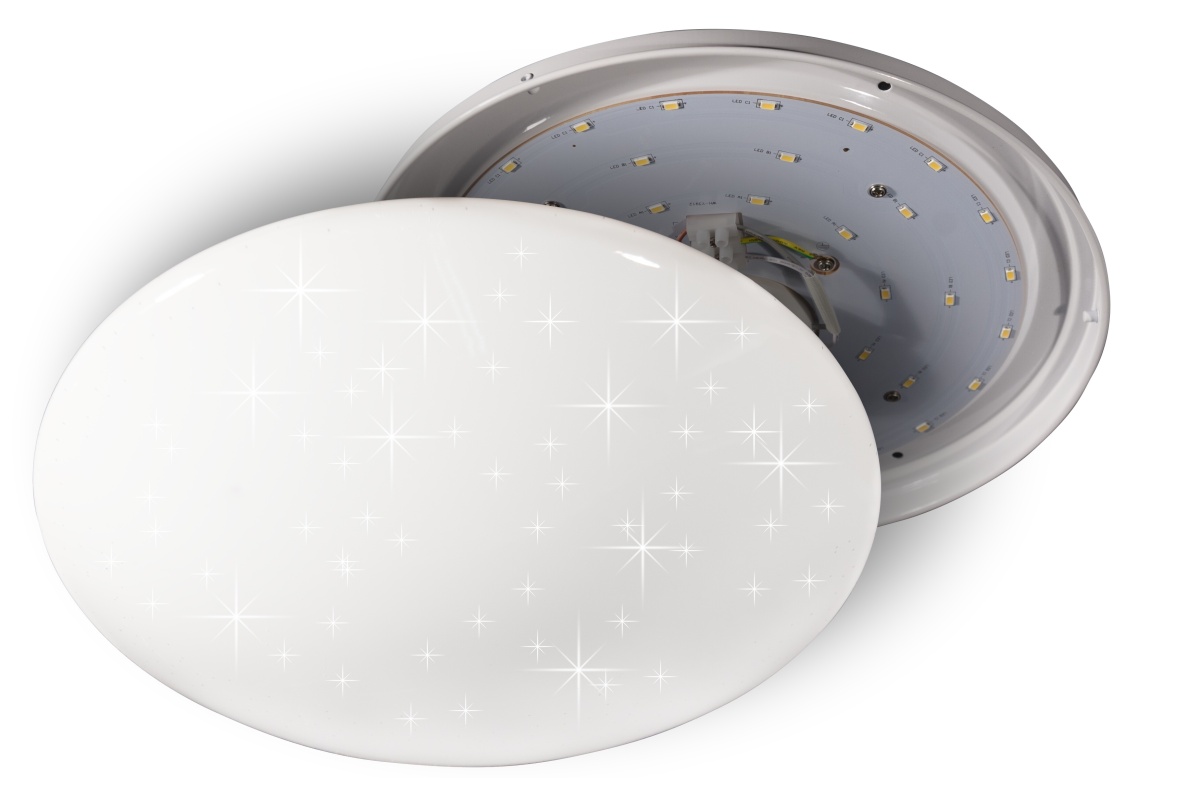 - Stropní nebo nástěnné LED svítidlo se stínítkem s třpytícím efektem, které se díky vysoce úspornému světelnému zdroji hodí všude tam, kde se dlouhodobě svítí