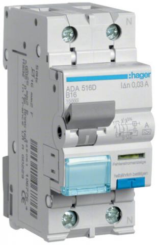 HAGER CHRÁNIČ PROUDOVÝ.KOMBI ADA516D CHAR. B 10KA 16A 0,03A