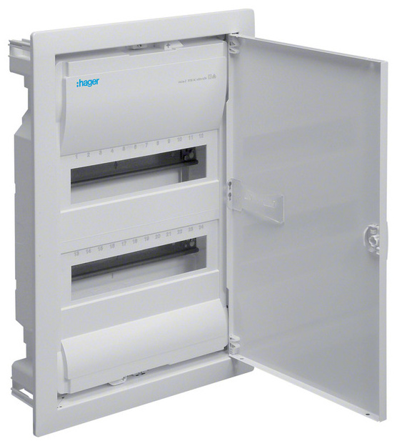 Malá rozvodnice v zapuštěném provedení, bezšroubové svorky. Plastová rozvodnice s oceloplechovým krycím rámečkem a dvířky. Dvířka rozvodnice lze vybavit zámkem. Je přizpůsobena pro pohodlné zavedení kabelů i uložení propojovacích vodičů. Přístrojový kryt rozvodnice s možností plombování. Je vybavena samolepícími popisovými štítky pro přehledné označení přístrojů a obvodů. Standardně je dodávána s příslušenstvím pro snadné upevnění rozvodnice a se svorkovnicemi pro připojení vodičů PE a N. Jednoduchá změna závěsu dvířek levé za pravé. Jednotlivé díly rozvodnice jsou přizpůsobeny pro velmi rychlou montáž.<br><br>Použití: pro kompletaci rozvodnic v bytech a rodinných domech, kancelářských budovách a drobných podnikatelských provozovnách (splňuje požadavky ČSN EN 61 439-3).
