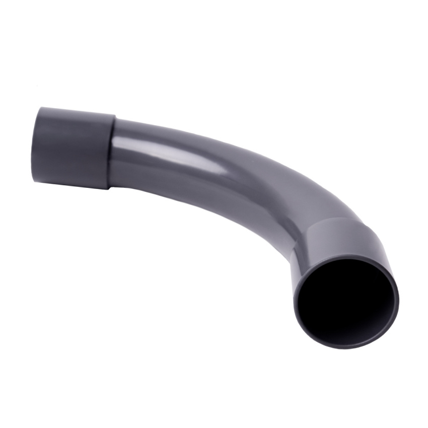KOLENO PVC. Vyhovují pro montáž na a do hmot stupně hořlavosti A - C3. Kolena vyrobená vstřikováním, s oboustranným hrdlováním, určené pro ohyb o 90°. Poloměr ohybu zabezpečuje plynulý přechod a umožňuje snadné zatažení vodičů a kabelů. Lze montovat do prostoru s nebezpečím výbuchu hořlavých plynů a par, nebezpečná zóna 2 a do prostoru s nebezpečím výbuchu prachu, nebezpečná zóna 22. Koleno pro tuhé a ohebné trubky vyráběné v rozměrové řadě EN.