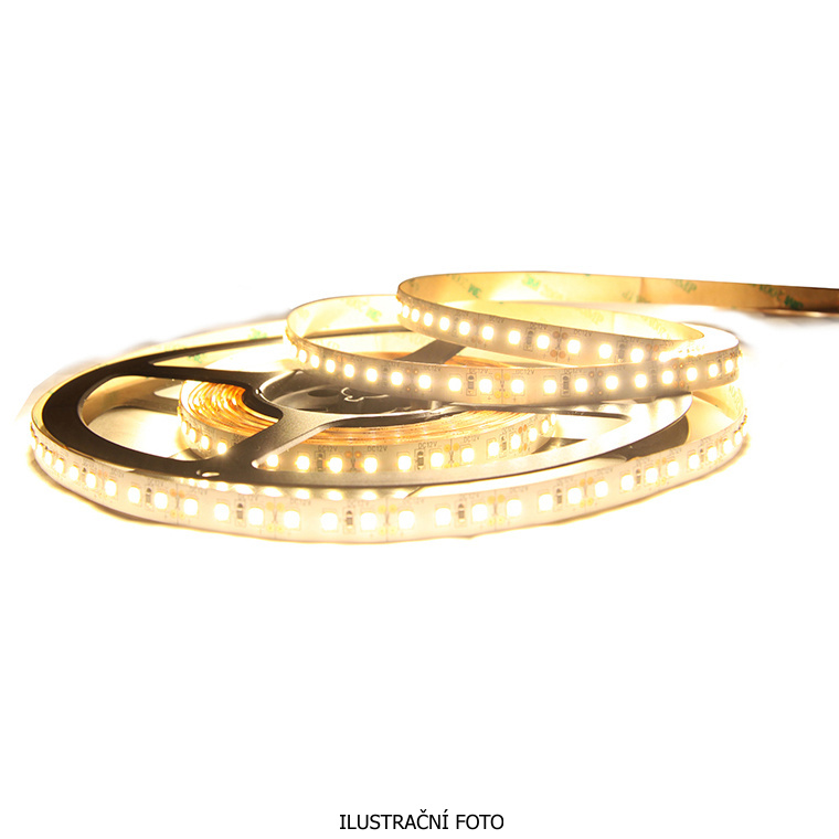 LED pásek SMD2835, teplá bílá (3000K), 4,8 W, 60 LED, 400 lm/m, CRI>90, segment 50 mm, 3 LED/segment, IP20, DC 12V, životnost 54000 h, šíře 8 mm, bílý PCB pásek, max. délka pásku při jednostranném zapojení: 5 m, opatřen samolepící páskou 3M, UV stabilní.