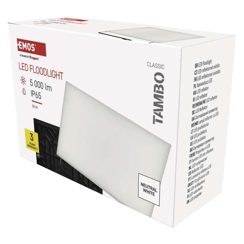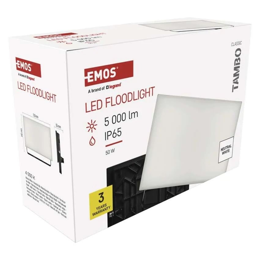 Výkonný a spolehlivý LED reflektor EMOS TAMBO 50W – ideální pro venkovní osvětlení s vysokou účinností a odolností.
