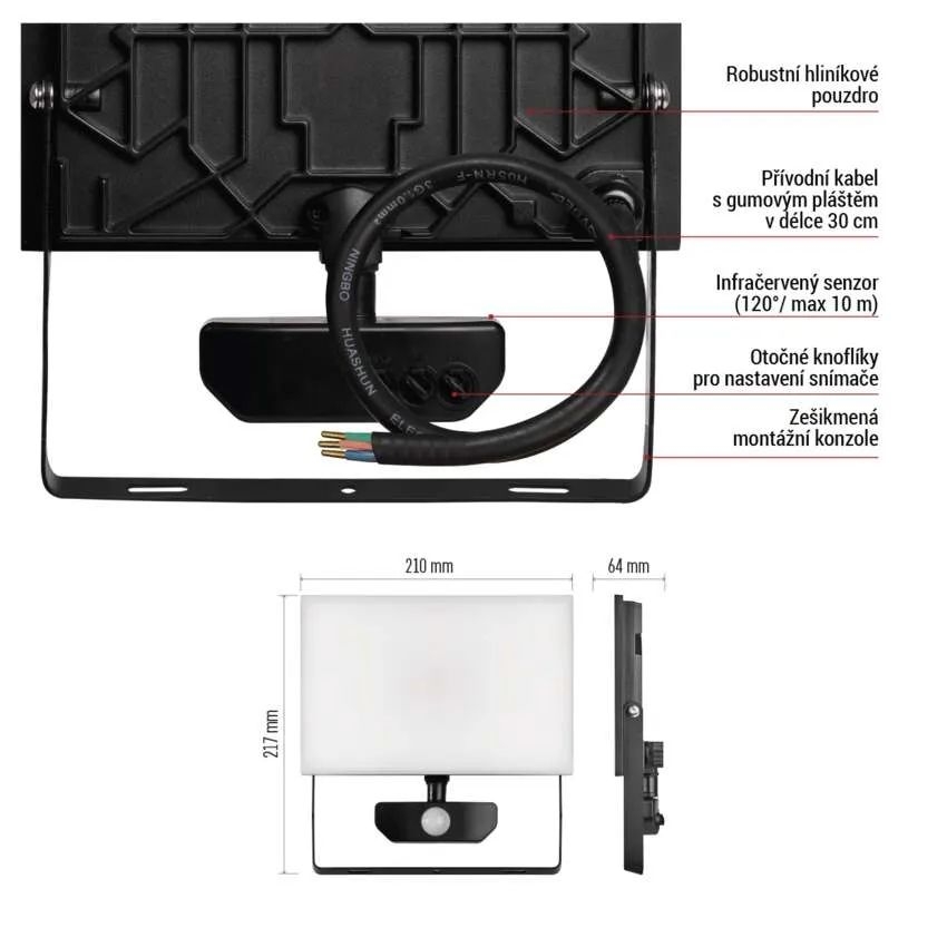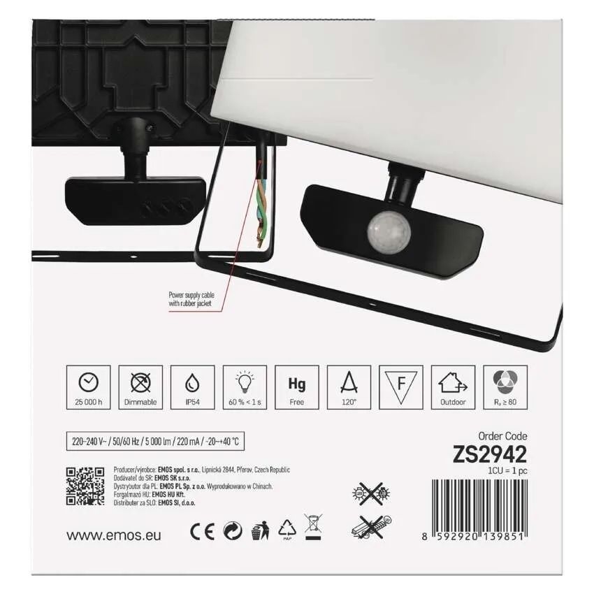 LED reflektor EMOS TAMBO se senzorem pohybu 50W 5000lm 4000K IP54 černý ZS2942